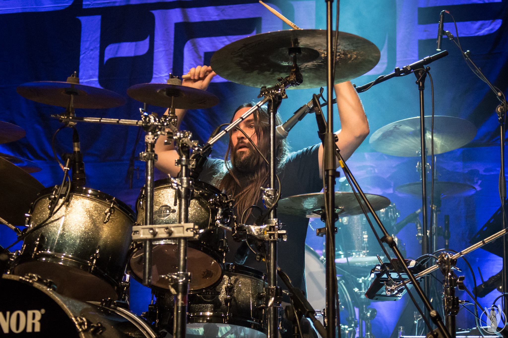 Gerade Gitarrist Danny Ritz und Bassist Jimmy Wynen haben derart viel Spaß auf der Bühne, dass man meinen könnte, sie wären mitten in ihrem Fitnessprogramm. Aber genau so und nicht anders sollte es auch aussehen, wenn eine Band Spaß an ihrer Musik hat. Entgegen den meisten heutigen Support-Slots haben DARKER HALF statt 30 Minuten sogar ganze 40 zur Verfügung und das Capitol füllt sich im Laufe des Gigs zunehmend. Das Publikum macht mit und die Band kommt sehr gut an. Sänger Vo Simpson hat das Publikum fest im Griff und kommt stimmlich in unerwartete Höhen.