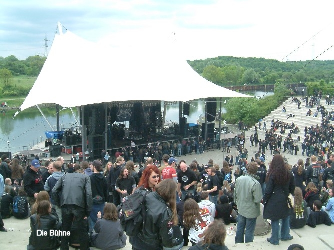 Noch ein paar mehr Besucher als 2004 kamen zum dritten Rock Hard Festival. Um die 6000 Besucher sorgten für eine stattliche Kulisse und auch schon am frühen Nachmittag für eine durchaus volle Tribüne. Inzwischen hat sich also der gute Ruf dieses Fesivals rumgesprochen und für viele hat die Veranstaltung bereits einen festen Platz im Festivalkalender gefunden. Auch wenn in diesem Jahr das Wetter eher durchwachsen war, wobei sich der Regen glücklicherweise in Grenzen hielt. (Tutti)