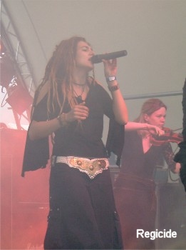 Das Rock Hard Festival eröffnen durften REGICIDE. Live ist mir die Band bis dato noch nicht vor die Flinte gekommen. Was nicht weiter schlimm ist, denn so sehr konnte mich die Formation mit ihrem Gothic Rock mit Keyboard und Geige nicht überzeugen. Ein paar brauchbare Melodie können die Norddeutschen sicher auffahren und so gehen einige im Publikum auch schon ganz gut mit ... aber auch erst nach Aufforderung. Naja... (Tutti)