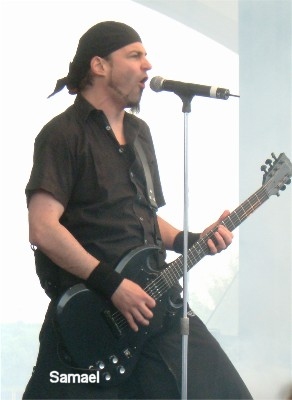 SAMAEL das bedeutet eigentlich "nur" eine riesige dicke Soundwand ... wenn der Sound denn auch stimmt und das war an diesem Spätnachmittag schon so ziemlich der Fall. Präzise wie ein schweizer Uhrwerk spulten die Eidgenossen ihr Programm ab. Wobei sich vor allem Bassist Christophe als äußerst bewegungsfreudig heraustellte. Dem wollte Xy an dem Keyboards und(!) Percussion aber nicht nachstehen und legte sich im Hintergrund ebenfalls mächtig ins Zeug. Bei gutem Sound sind die Jungs live einfach nicht zu toppen. Die Soundwalze rollt wahrscheinlich immer noch irgendwo durch Gelsenkirchen. (Tutti)