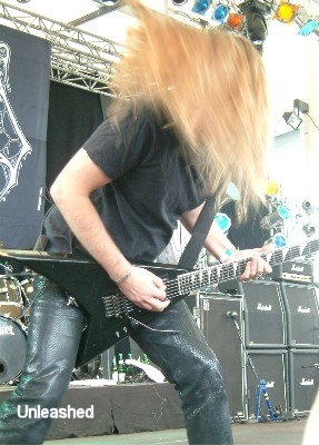 Es war mal wieder soweit, die im letzten Jahr gewissermaßen von den Toten auferstandenen UNLEASHED gaben sich die Ehre. Die Schweden boten eine solide und schnörkellose Performance, bei denen eine gut durchdachte Mischung aus Stücken ihrer sieben Alben präsentiert wurde. Von "Before The Creation Of Time" über "Shadows In The Deep", "To Asgaard We Fly", "Victims Of War" und "Death Metal Victory" bis hin zu einigen Songs ihres aktuellen Albums "Sworn Allegiance" war alles dabei. Es war ein Gig ohne Höhen und Tiefen, man bekam das geboten, was man von den Jungs um Sänger Johnny seit Jahr und Tag gewohnt ist. Ein bisschen mehr Abwechslung in der Songauswahl im Gegensatz zu den Festivalauftritten vom letzten Jahr hätte ich mir gewünscht, doch UNLEASHED wichen leider nicht von ihrem Standardrepertoire ab. (Thomas)