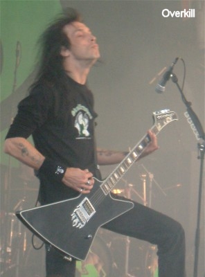 Klarer Gewinner des Festivals sind für mich OVERKILL. Das passt auch richtig, denn die Band feiert ihr 20-jähriges Bestehen und aus diesem Anlass wurde der Song "Rotten To The Core" auch einfach mal unterbrochen und der Band wurde von Mitgliedern des OVERKILL Fanclubs Skullkrushers Germany ein Geschenk überreicht. Ansonsten ging es aber eine Stunde lang kräftig zur Sache und nach Stücken wie "Wrecking Crew", "Elimination", "Hello From The Gutter", "Thanx For Nothin'", "Old School", "Necroshine" und "Fuck You" wurde die Band immer wieder mit OVERILL-Sprechchören gefeiert. Verständlich denn Blitz & Co. legten einen Performance hin wie man sie von Herren in dem Alter nun wirklich nicht mehr erwarten darf. Allen voran Frontmann Bobby Blitz war (glücklicherweise) nicht zu halten. Sehr starker Auftritt bei dem die Band auch ohne ein Stück wie "In Union We Stand" einmal mehr ihre herausragenden Stellung als starke Live Band untermauern konnte. (Tutti)
