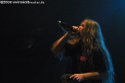 Allein der Einstieg mit dem Instrumental „Redneck Stomp“ war einmal mehr absolut genial und passend. Meister John Tardy war sichtlich begeistert ob der frenetischen Reaktionen und übertrug seine gute Laune auf das Publikum. Die Band war einmal mehr perfekt aufeinander eingespielt und brachte wohl den besten Gig des ganzen Festivals zu Stande. Egal ob Songs neueren Datums wie z.B. „Lockjaw“, „Insane“ oder alte Kultklassiker wie „Slowly we rot“, hier klang alles wie aus einem Guss und wusste zu überzeugen. Unglaublich war auch, mit welcher Leichtigkeit Master Allen West seine Mörder-Riffs ins Publikum schleuderte. Cool und lässig mit Kippe auf dem Zahn und mit einer extremen Coolness wirkte er schon fast ein wenig abwesend. Das nennt man dann wohl den „Jack Owen-Effekt“ ;-)