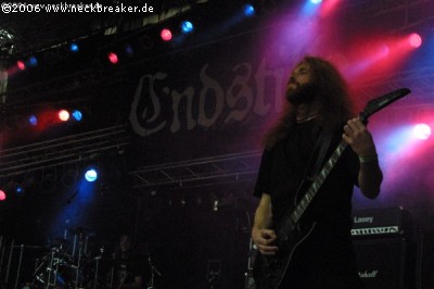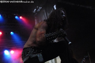 Mit Abstand die beste Black Metal Band des Festivals und wer dem schwarzen Metall zugetan ist und KOLDBRANN noch nicht kennt, sollte wirklich mal ein Ohr riskieren. Dem UFTG 2006 gefiel die Vorstellung wohl auch, was sie durch ordentlich Beifall kundtaten, der noch um einiges lauter wurde, als zum letzten Song „Bestial storm“ Endstille’s Iblis das Gastmikro übernahm. (Bernie)
