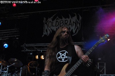 Mit KOLDBRANN gab es nun die erste True Black Metal Band des Festivals zu begutachten. Die Norweger schlugen sich auch mehr als wacker und überzeugten auf ganzer Linie mit ihrem teils schnellen, teils höllisch groovendem Black Metal, der eine gelungene Abwechslung zu zum reinen Knüppel BM darstellt. Hier sind die Wurzeln des Genres, Hellhammer, Venom und Konsorten, deutlich heraus zu hören.