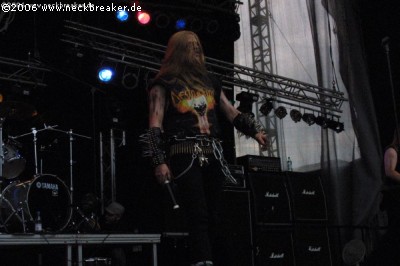 2006 taten sich aber einige erhebliche Mängel in Punkto Organisation auf, die nicht unter den Tisch fallen dürfen! Dazu aber später mehr, zuerst soll unser Fokus auf dem wichtigsten Aspekt eines Festivals liegen, nämlich der Musik und den Bands. Wobei hier jeglicher Kommentar über die Soundqualität der einzelnen Auftritte aussen vor gelassen werden soll, da sich auf einem Festival der Sound eh von allen Stellen anders anhört, so an: