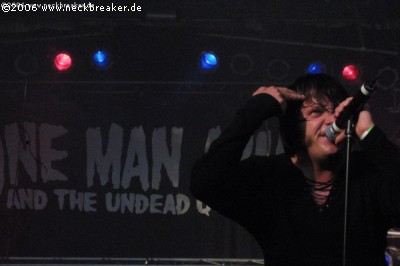 Unter dem Banner ONE MAN ARMY AND THE UNDEAD QUARTET hat sich Anfang 2006 mit Sänger Johan Lindstrand das erste Mitglied der aufgelösten The Crown auf der metallischen Bühne zurückgemeldet. Mit dem geilen Debüt „21st Century Killing Machine“ im Gepäck beackerten die fünf Schweden diesen Sommer fleißig die deutschen Festivalbühnen, und zum Abschluss gaben sie auch auf dem UFTG alles. Der midtempolastige Death Metal brachte etliche Köpfe im zahlreich erschienenden Publikum zum Rotieren, und besonders das Charisma vom Kotletten-König und „Satan from Hell“ Johan war ein Highlight. Mit dem Songmaterial des Debüts wie „Devil On The Red Carpet“, „When Hatred Comes To Life“ und „So Grim So True So Real“ kann man zudem eh nichts falsch machen – auch wenn natürlich der ein oder andere The Crown-Klassiker eine gern gesehene Überraschung gewesen wäre. So oder so, OMAATUQ war auf jeden Fall ein Highlight, und man kann nur hoffen, dass die Untoten-Armee so weitermacht. (Kai)