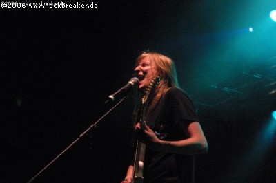 Was auch immer, das Publikum nahm den Mix aus ein bisschen Death Metal, viel Nu Metal und ganz viel Drogen sehr verhalten auf, es dauerte ewig lange Sekunden, bis sich die 5 Mann vor der Bühne zu einem leichten Höflichkeitsapplaus hinreißen liessen. Sängerin Michele Madden wirkte mit ihren eckstatischen Zuckungen alles andere als clean und nüchtern und nervte desöfteren mit sehr gewöhnungsbedürftigem Gesang. Zumindest zeigte sie Humor und verlangte nach Alkohol, Drogen und Pornos (ob das wirklich ein Spaß war?). Ob diese Band in Deutschland viel reißen wird, ist nach diesen zwei Auftritten fraglich. Wir werden sehen. (Bernie)