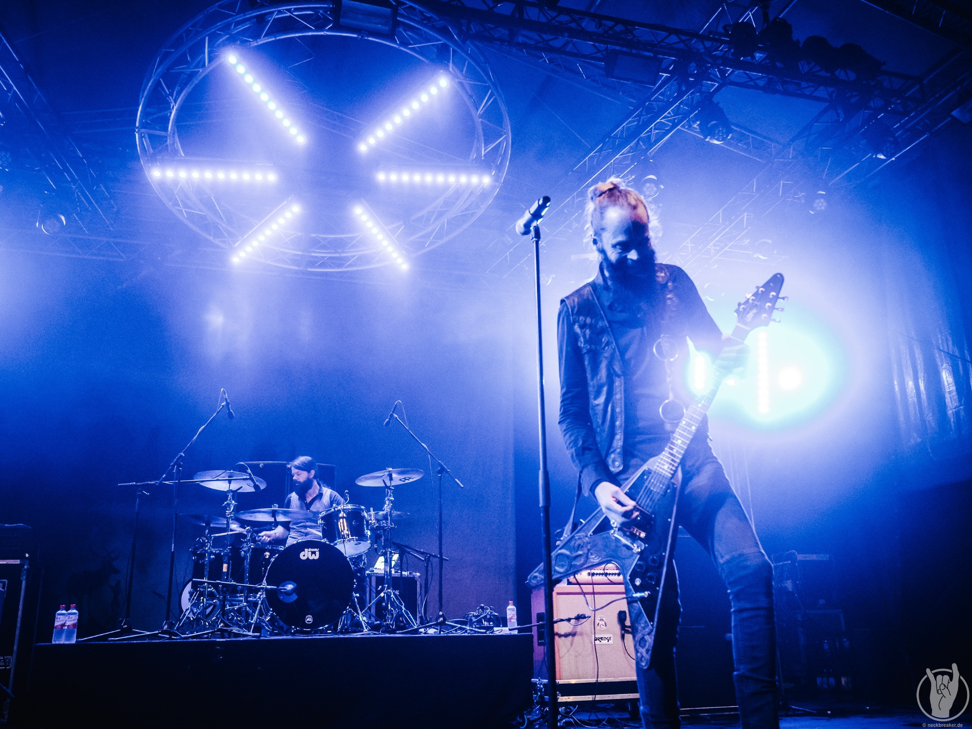 FAUN mochte ich immer ganze gerne, auch wenn ich mich jetzt nicht als super Fan bezeichnen würde. In den letzten Jahren habe ich sie aus unerfindlichen Gründen etwas aus den Augen verloren, daher wollte ich sie nun unbedingt sehen, wenn sie schon so nah auftreten. Pflichtbewusst habe ich mir auch gleich das neue Album gekauft, damit wir an dem „aus den Augen verlieren“ arbeiten können. FAUN sind eine Band, zu deren Musik man sich wegträumen kann, aber sie ist auch sehr tanzbar. Entsprechend doof gucke ich aus der Wäsche, als ich in die Neue Gebläsehalle komme und den Saal bestuhlt vorfinde. Was soll das denn? Ich bin so verwirrt, dass ich erst mal nicht kapiere, dass die Stühle auch noch markiert sind und es keine freie Platzwahl gibt. Nun gut.