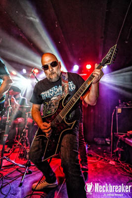 Schon beim Aufbau und Soundcheck war die Stimmung im Publikum recht ausgelassen. Die ersten Sprechchöre waren zu hören, und mit den ersten Akkorden schnellte die Stimmung schlagartig ganz nach oben. LEFT TO DIE spielten die Songs der ersten beiden DEATH-Alben, "Scream Bloody Gore" und "Leprosy", nahezu vollständig, die beiden Alben bereiteten DEATH damals die verdiente Bühne, um ganz groß zu werden. Mit an Bord der Truppe waren neben den Urgesteinen Rik Rozz und Terry Butler die beiden GRUESOME-Jungs Matt Harvey und Gus Rios. Ersterer klang nicht nur stimmlich wie ein Chuck Schuldiner damals, sondern beherrschte auch die Gitarre ähnlich wie sein großes Vorbild.