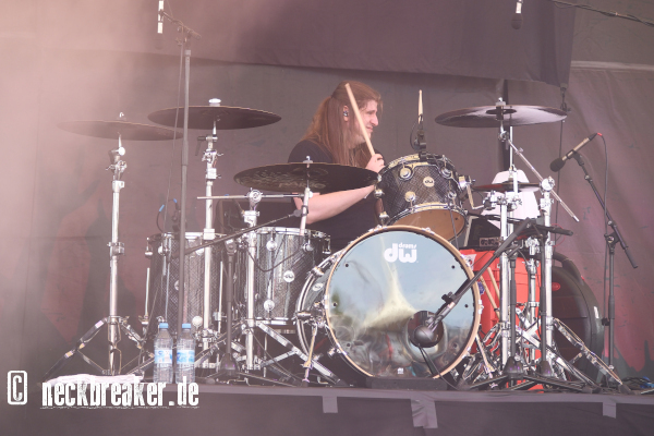 Wir blieben beim Heavy Metal und es wurde noch als Bonus der Heimvorteil mit draufgepackt. Es wäre sicher toll ATTIC mit ihrer Show zu späterer Stunde sehen zu können, aber dafür waren die anderen Bands des ersten Tages dann doch zu namhaft. Das aktuelle Album der Gelsenkirchener hat aber gute Karten mal als Klassiker zu gelten. Für mich war das definitiv einer der stärkeren Auftritte der Band. Gefühlt sprang der Funke zum Publikum auch stärker über als dies z.B. beim Metal & Hell im letzten Jahr war.